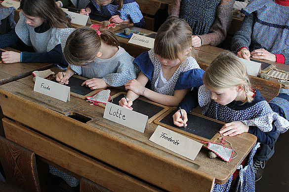 Im historischen Klassenraum beginnt eine Zeitreise in die Schule um 1900. Mit Griffel und Schiefertafel erleben die Schüler/innen den Unterricht in alten Schulbänken. Schulalltag und Erziehungsvorstellungen aus der Kaiserzeit kann man auf diese Art spielerisch kennenlernen.