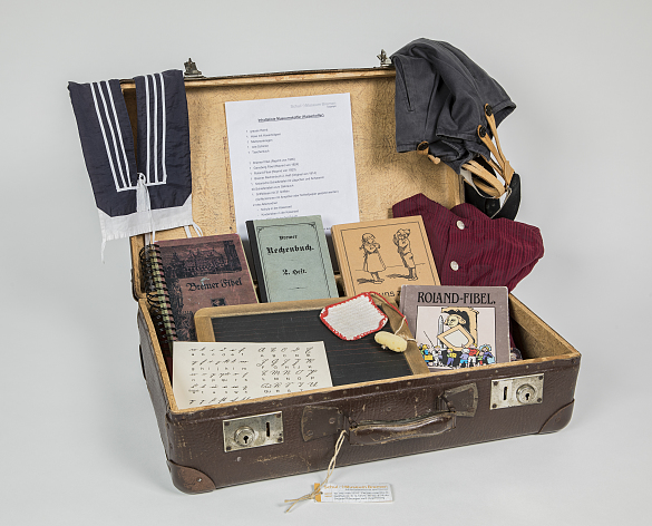 Zum Thema Schule und Kinderleben in der Kaiserzeit bieten wir ein umfangreiches Material im Museumskoffer an. Er beinhaltet u.a. Schulranzen, Schiefertafeln, Griffel, historische Kleidungsstücke und Fibeln, Dokumente und Fotomaterial der Schule vor 100 Jahren. Nach Absprache / je nach Bedarf kann der Koffer entsprechend befüllt werden.